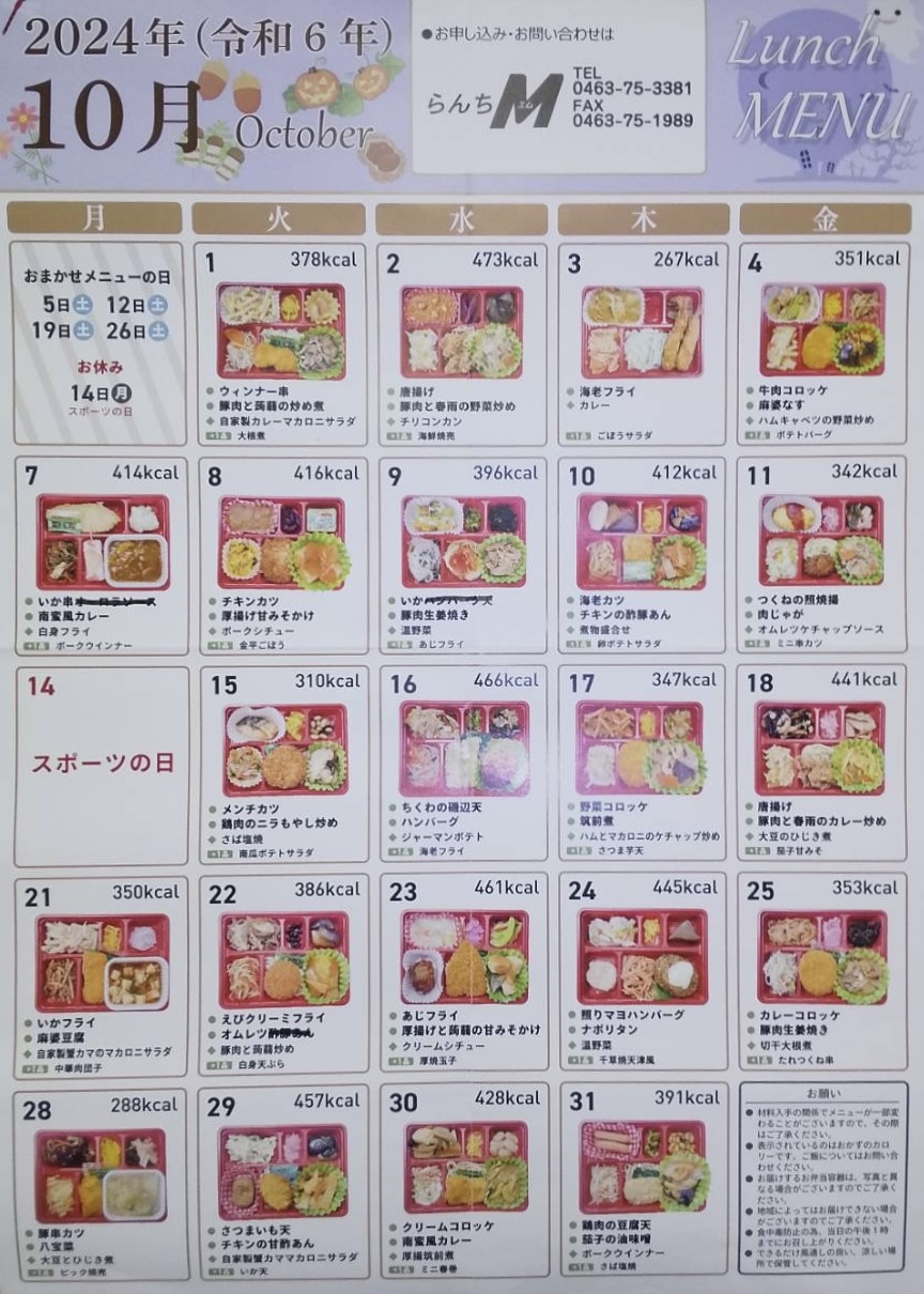 2024年10月のLunch menuを公開します!