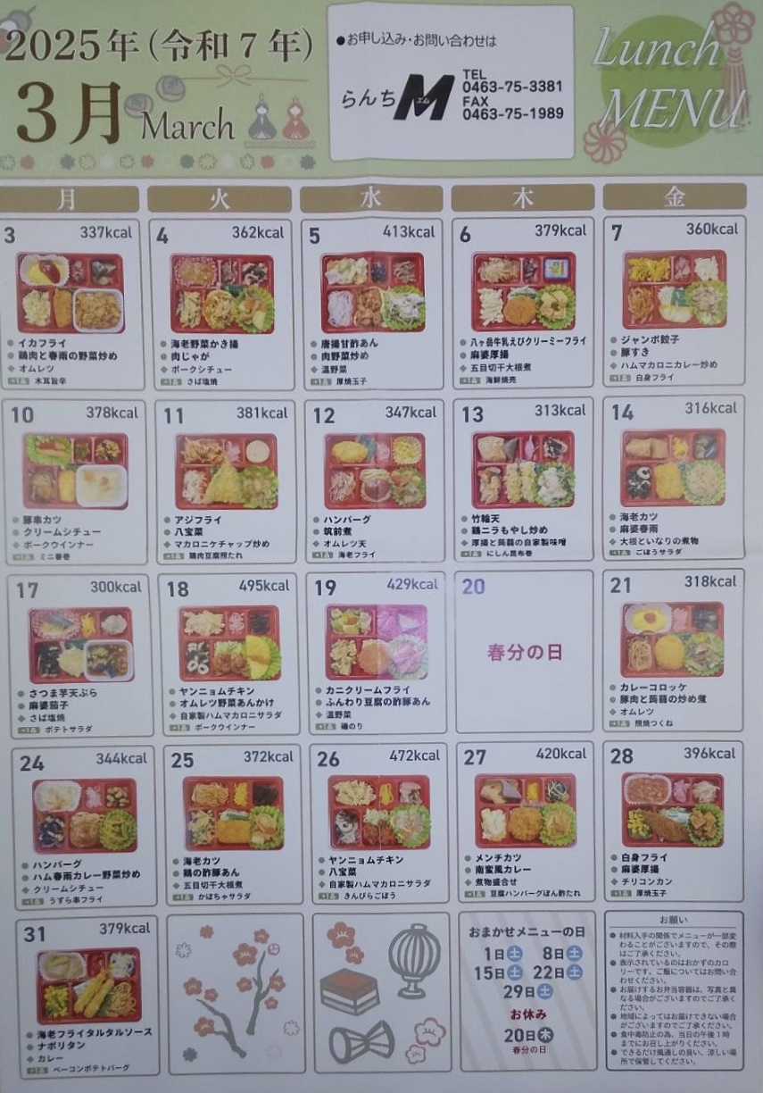 2025年3月のLunch menuを公開します!