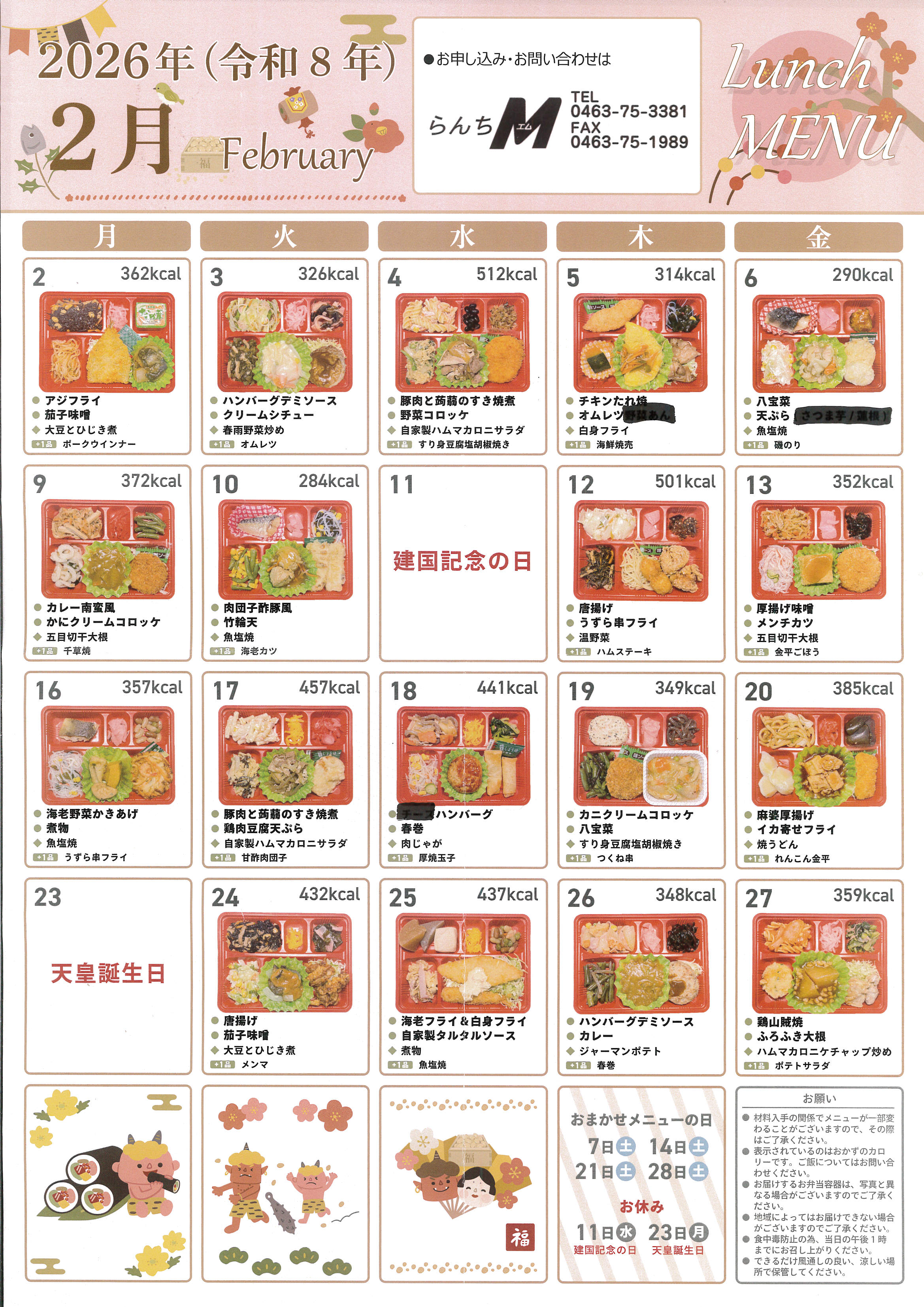 2026年2月のLunch menuを公開します!